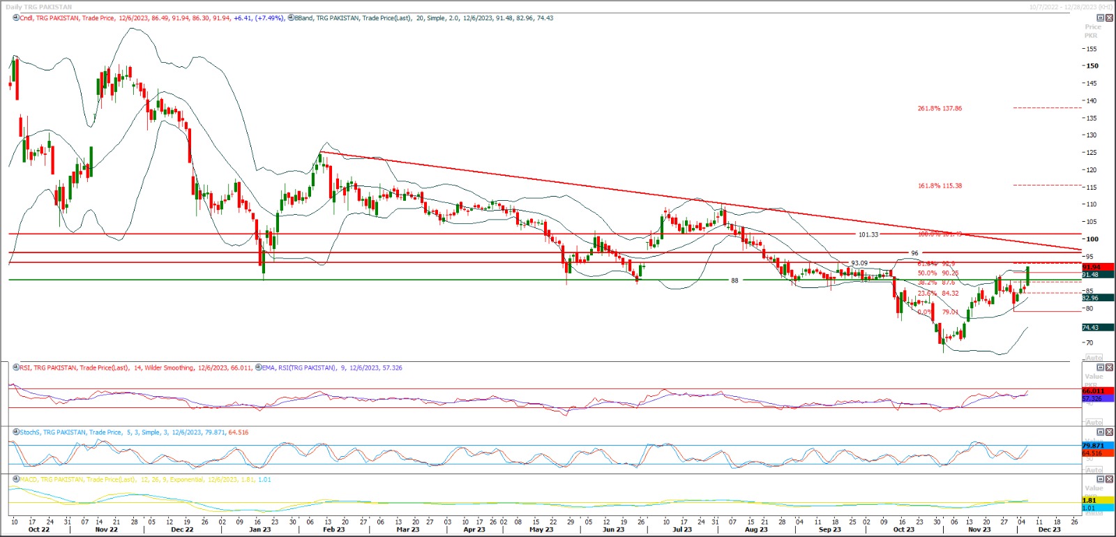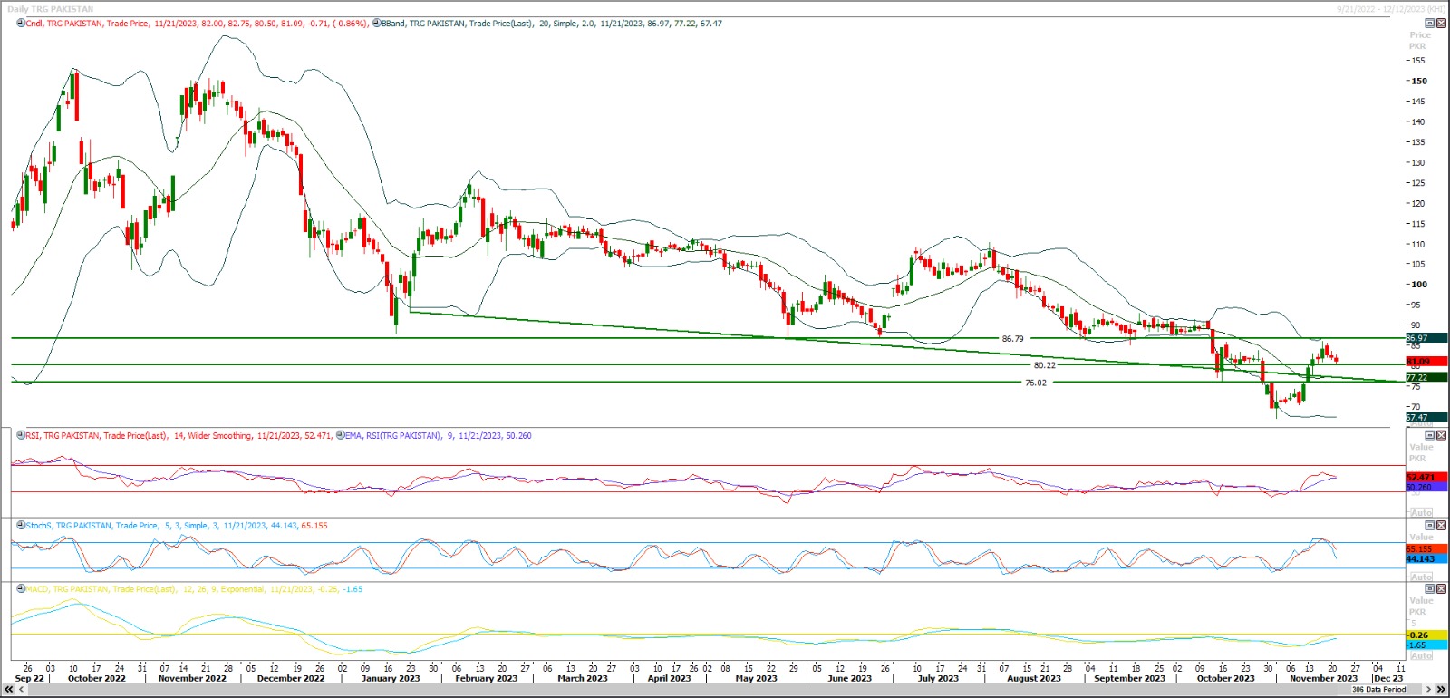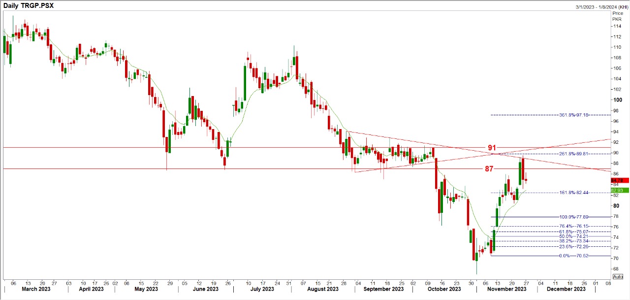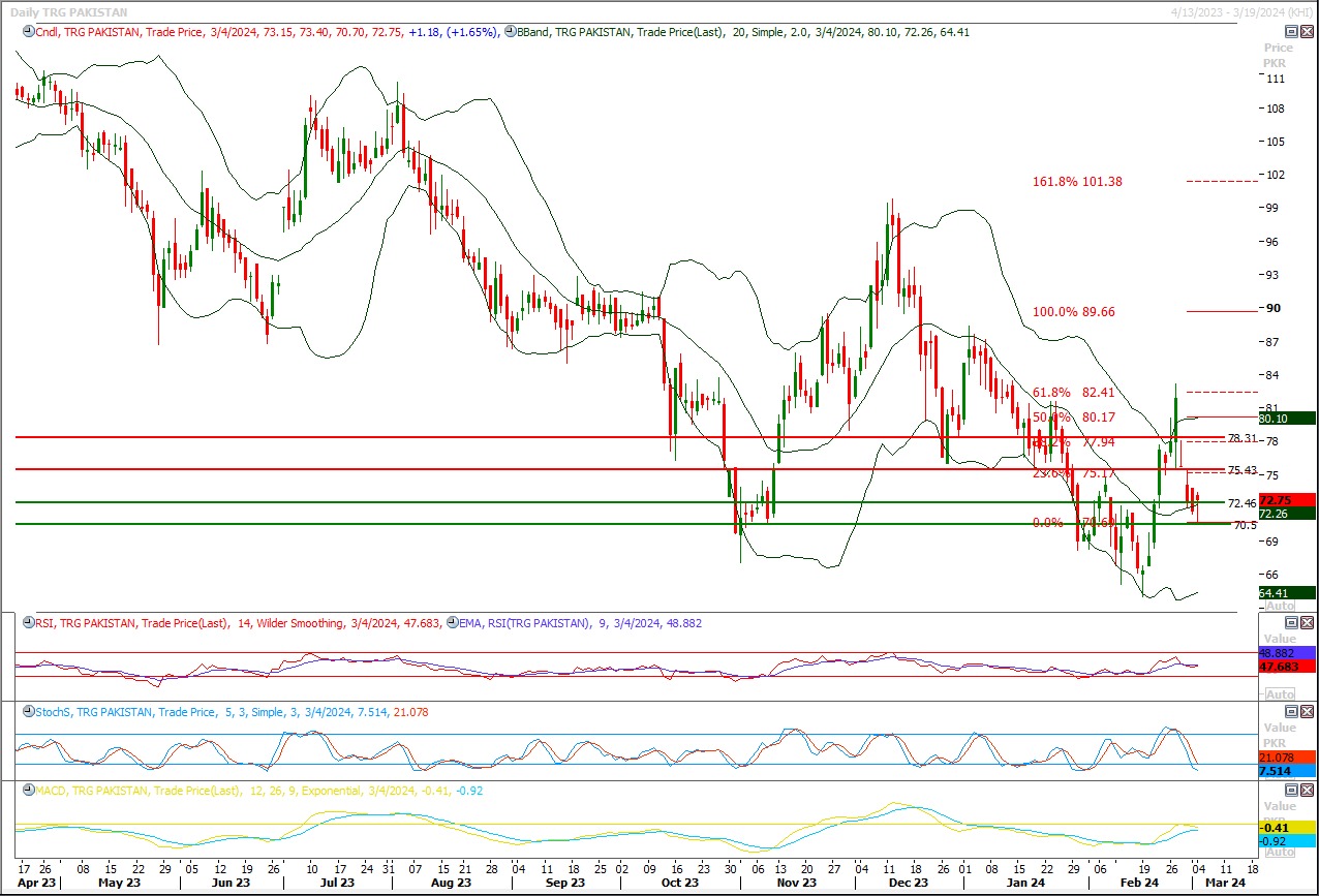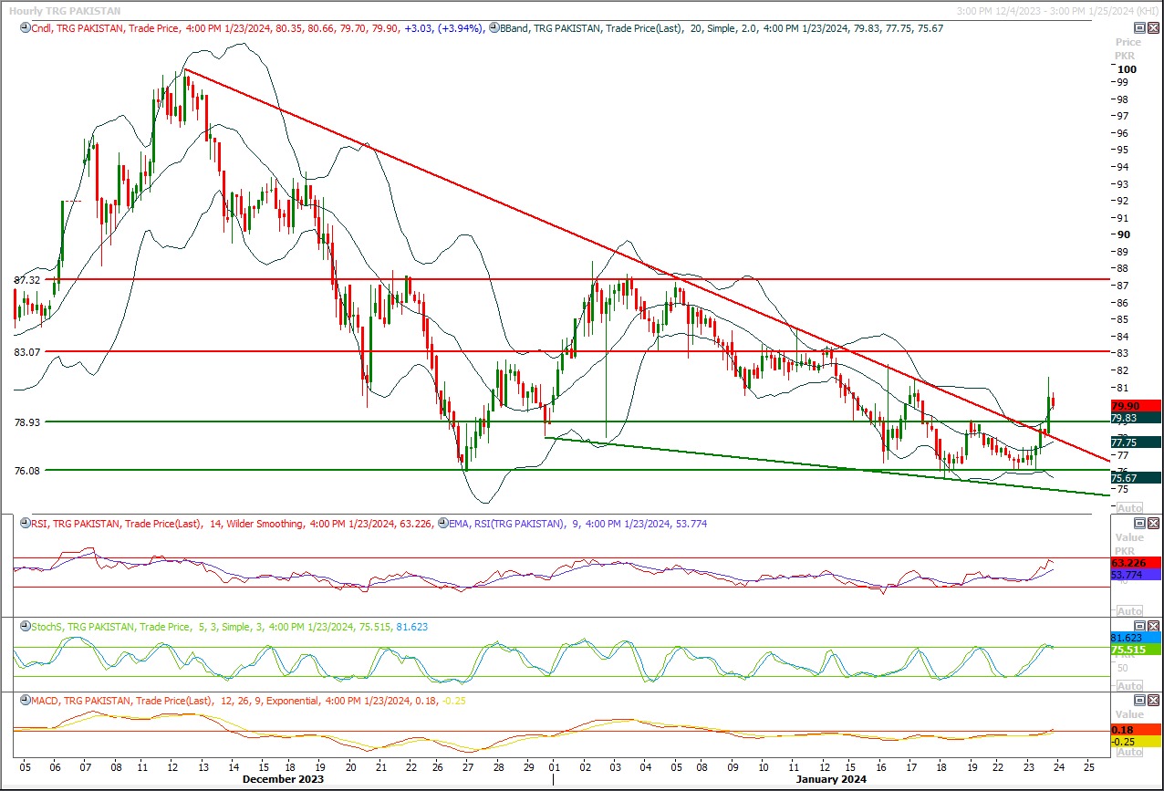TRG seems to bounce back tomorrow from 80 Rs region therefore buying with strict stop loss of 77 is recommended, profit targets are 83 and 87 Rs.TRG is not a trust worthy items for common investors therefore it's recommended only for daring souls.